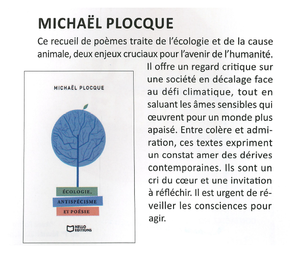 « ÉCOLOGIE, ANTISPÉCISME ET POÉSIE » ENCRÉ DANS TÉLÉRAMA